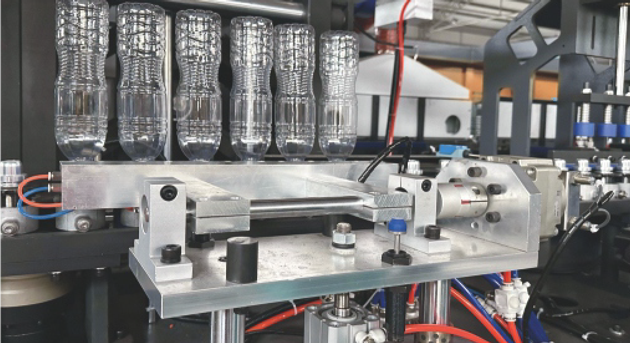 采用伺服電機驅動環(huán)形鏈條; 采用伺服單通道上胚; 采用鋁合金制造的高壓吹氣組合閥,可有氣體回收裝置,減少能源消耗,保護環(huán)境; 采用PID恒定控制烤箱瓶胚加熱和風機排風。